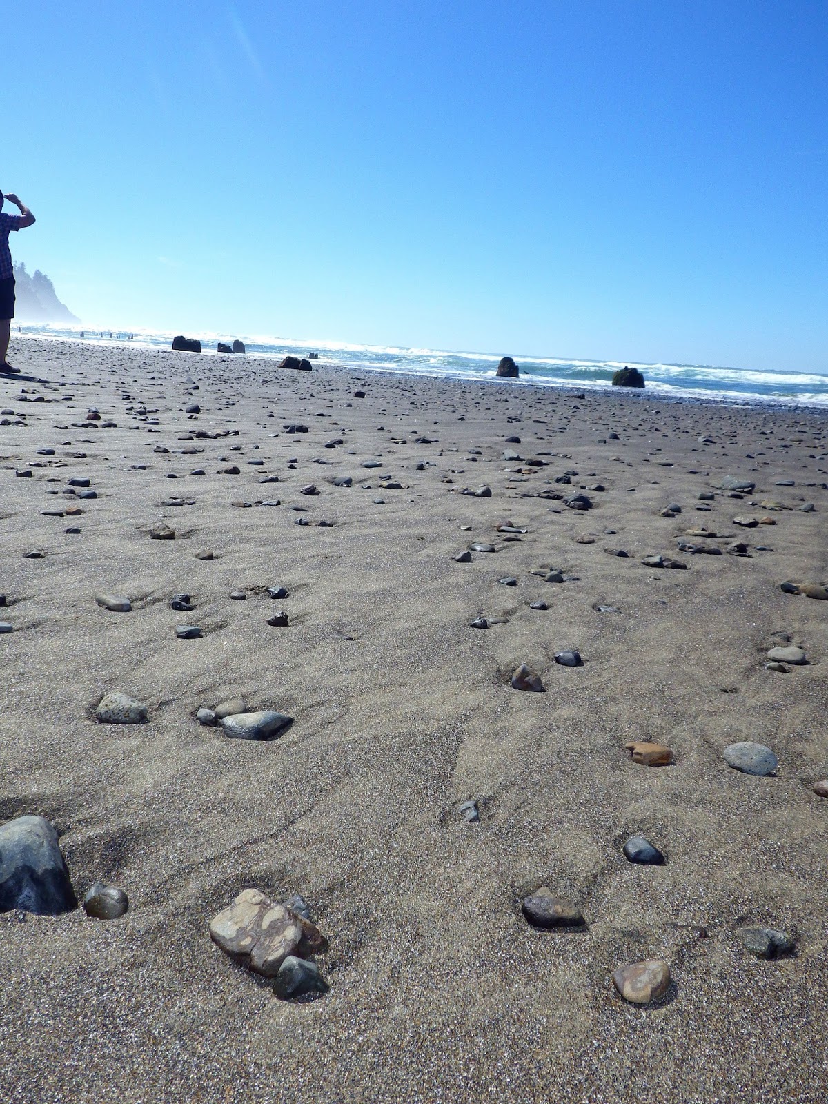 It was a very rocky beach. Every time waves came in you could hear the rocks rolling into each other. It made a neat sound, but you don't want to wade in the water, the rocks hit you as the water comes in.