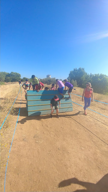 So....it was hot. We were in a 9:30 wave...and it was hot. I hoped there would be mud right away...but the last 2 obstacles had mud, the rest were dry. There were 2 water stations, which even with a short race, were needed cuz, again....it was hot.